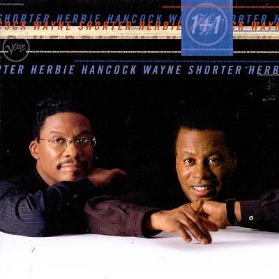 In Weather Bird: Jazz at the Dawn of Its Second Century, Gary Giddins considers 1+1 (1997), the collaborative album with only Herbie Hancock and Wayne Shorter, as “An album of absences, it has something to disappoint everyone. On the one hand, it is acoustic-soprano sax and piano-and highly melodic, with not even the echo of a funk backbeat. On the other, it is by no means a conventional jazz record, eschewing as it does blues, standard harmonic progressives, and swing. Its daunting sameness in tempo and mood can only be perversely deliberate, yet each piece is beautifully played and imaginatively conceived.” (Giddins manages to put a really positive spin on basically negative qualities (“daunting sameness”) about so many 90s’ albums that don’t stand up to the test of time.) Worth stating is that 1+1 follows Shorter working out unbelievable personal trauma when Ana Maria, his wife of thirty years, suddenly passed away when the TWA Flight 800 exploded into the Atlantic in 1996 en route to visiting Shorter on tour. Ana Maria’s death hangs over the songs: Shorter’s blowing near the end of “Meridianne - A Wood Sylph” is devastating while his partner evokes Erik Satie. Alas, too long, too long! And I can’t help but think that a bass and drum kit could only have turned “Aung San Suu Kyi” (which nabbed them a Grammy) into a Shorter all-timer; the melodic component is certainly there.